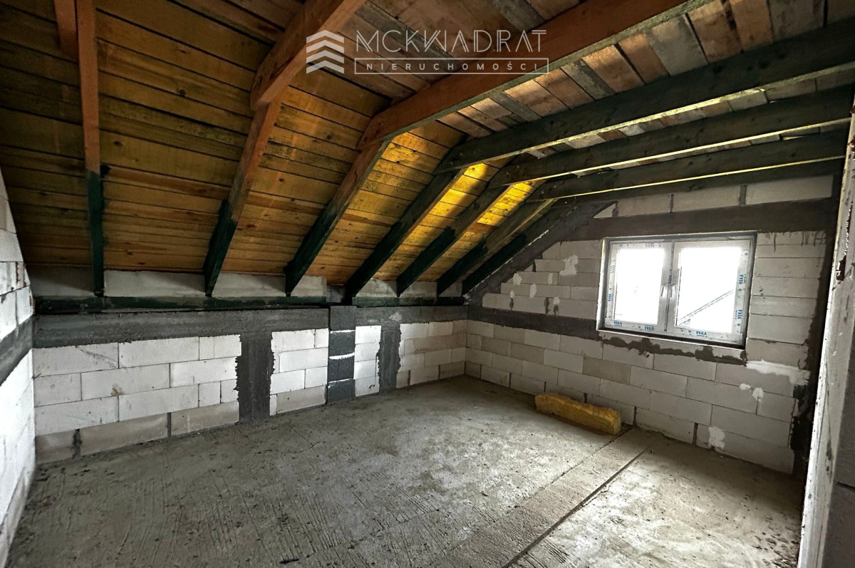 Dom jest w stanie surowym, zamkniętym. Działka ma powierzchnię 580 m2.