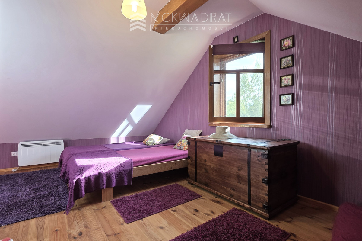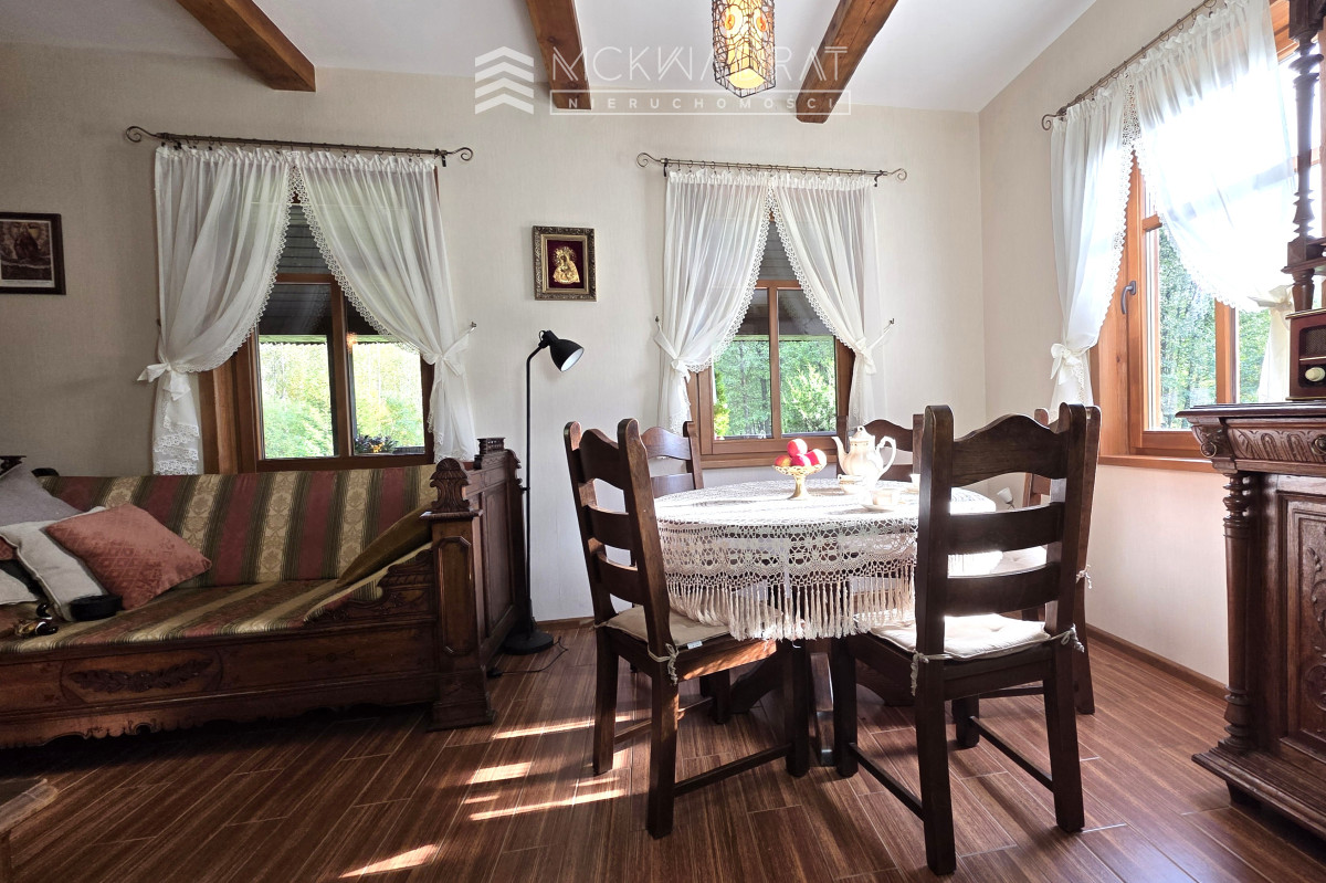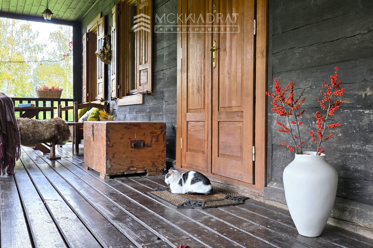 Dom o powierzchni 120 m² (94 m² użytkowych) powstał w 2012 roku z ponadstuletnich bali drewnianych, przeniesionych z innej miejscowości i złożonych na nowo z dbałością o każdy detal.