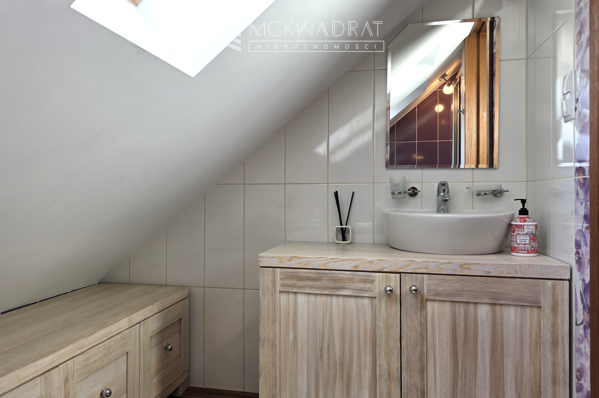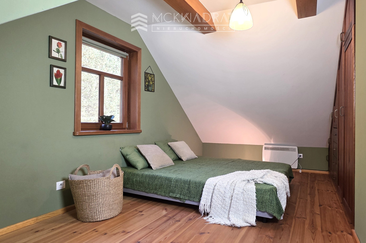 Na piętrze mamy do dyspozycji: 2 duże sypialnie (o powierzchni 12 m2 każda), ogrzewane grzejnikami elektrycznymi i wygodną łazienkę o powierzchni 3 m2 (grzejnik elektryczny), hol to 3 m2.