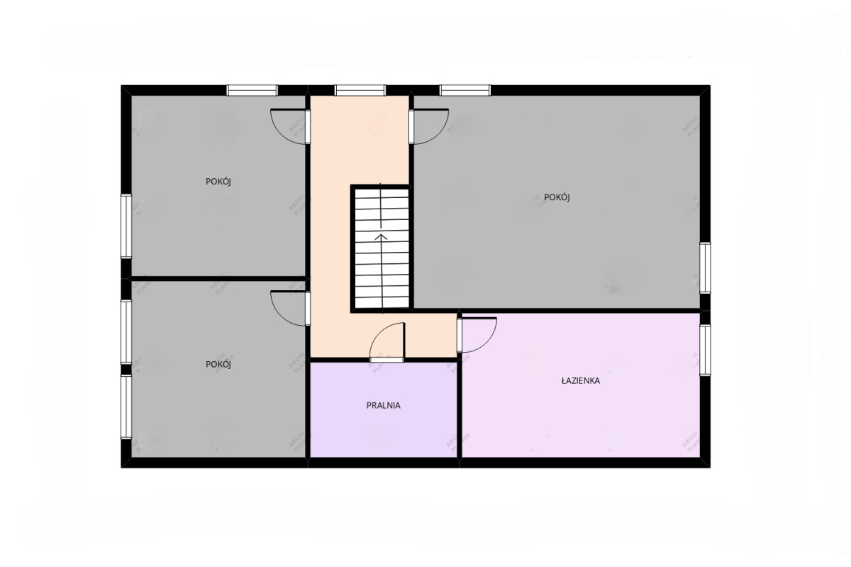 Na pierwszym poziomie znajdują się 2 duże pokoje, kuchnia, spiżarnia, łazienka i korytarz.
