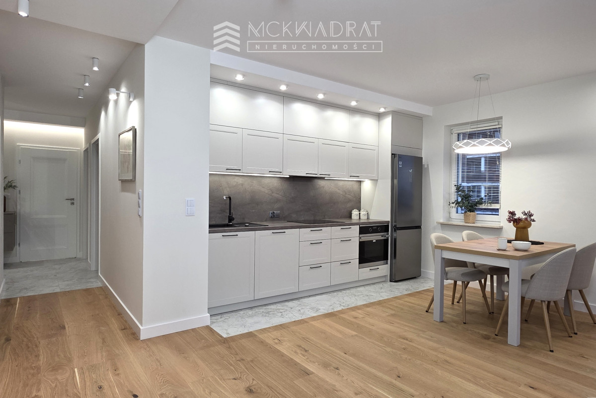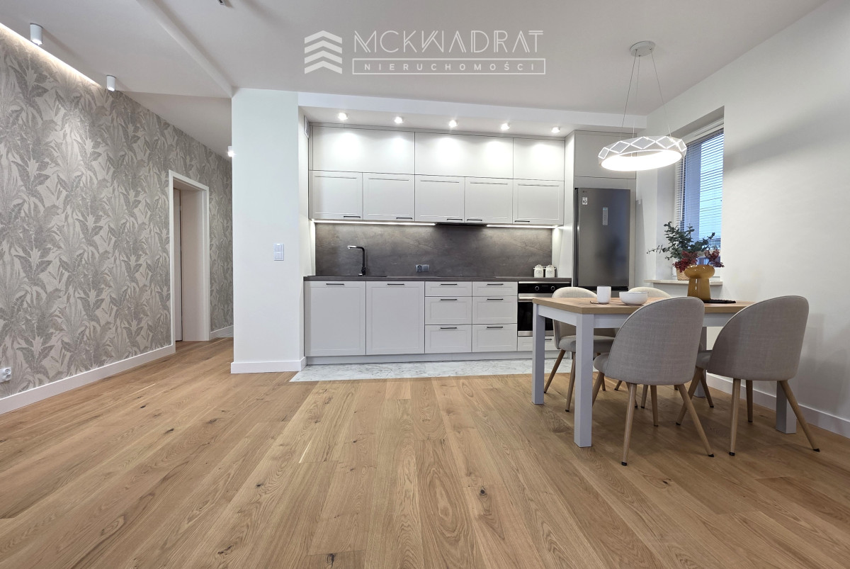 Wyposażony w zabudowy, sprzęty RTV i AGD, meble kuchenne, stół jadalniany i krzesła.