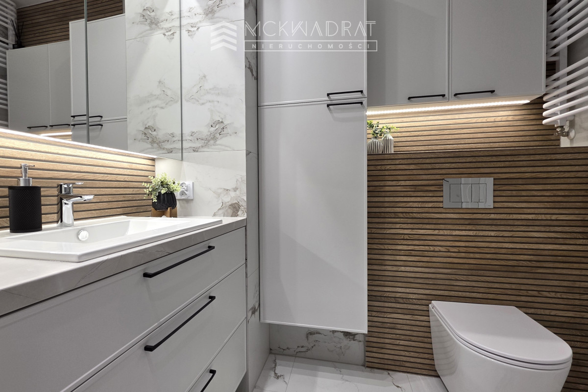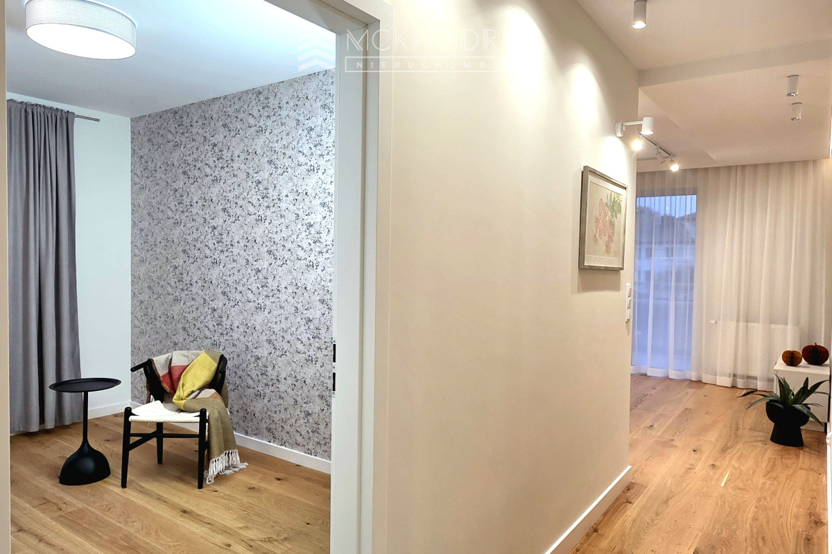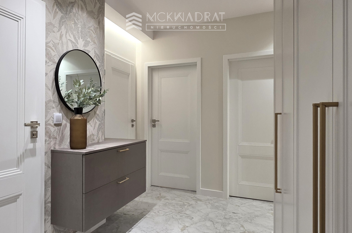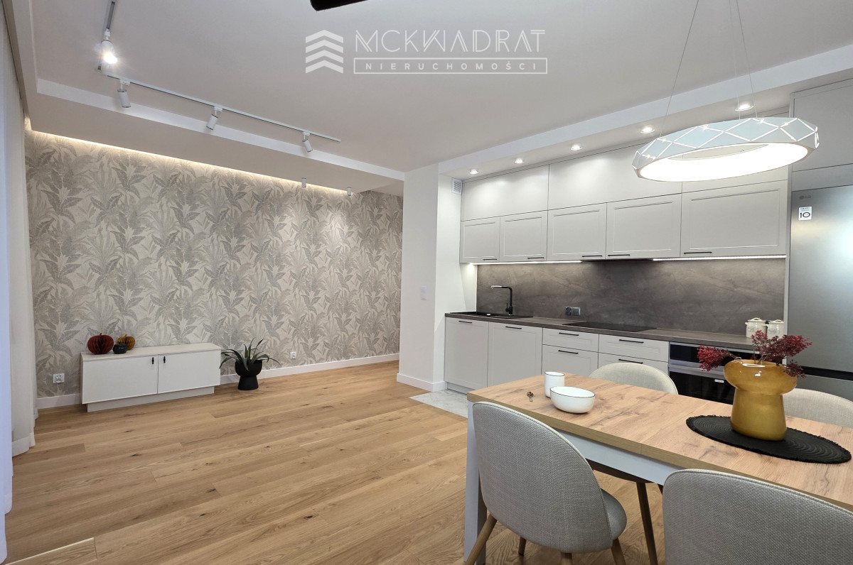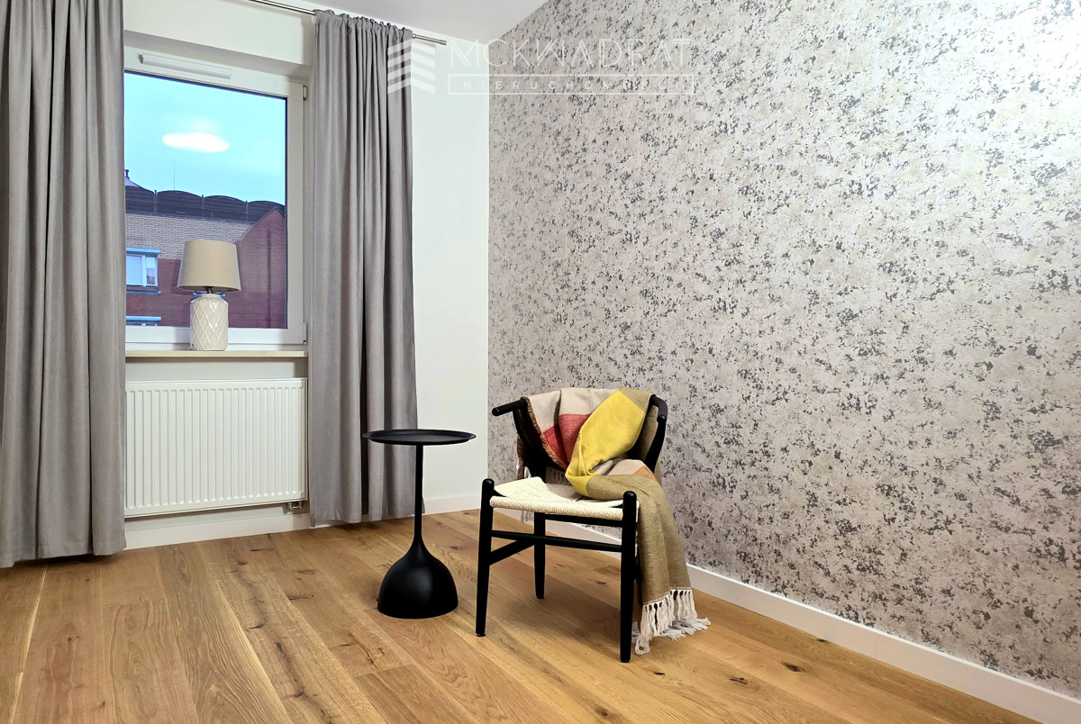 Apartament jest w pełni wykończony, użyto wysokiej jakości materiałów, funkcjonalnie i gustownie zaaranżowano przestrzeń przy udziale sprawnego architekta.