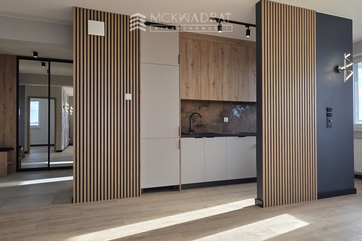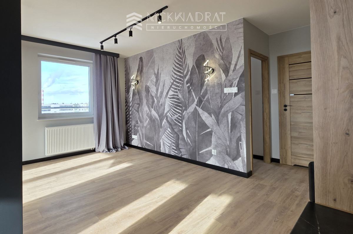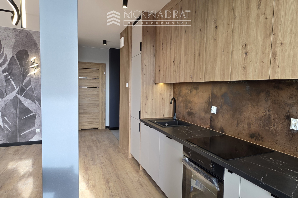 Wyposażony w zabudowy, sprzęty AGD, meble kuchenne oraz klimatyzację.
