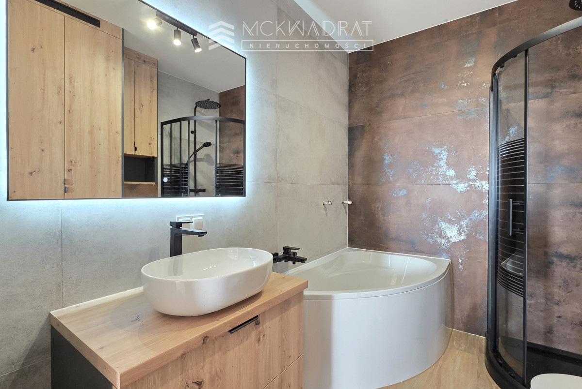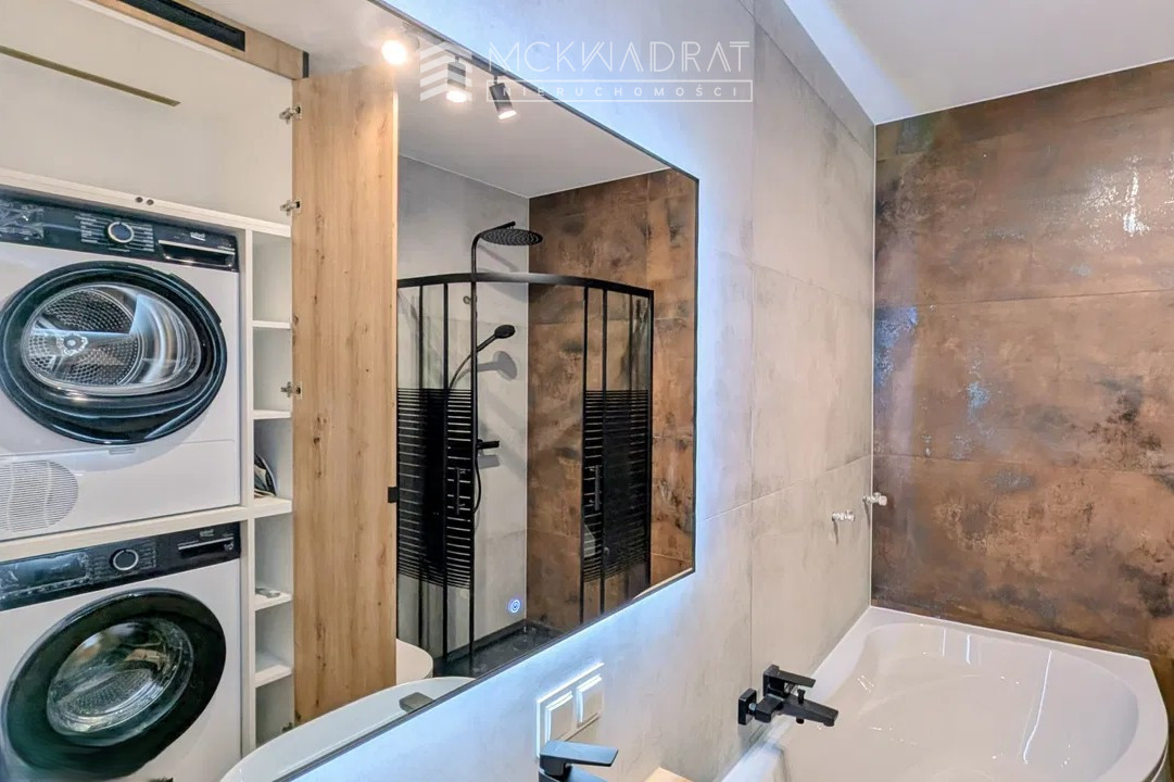 Apartament jest w pełni wykończony, użyto wysokiej jakości materiałów, funkcjonalnie i gustownie zaaranżowano przestrzeń przy udziale sprawnego architekta.