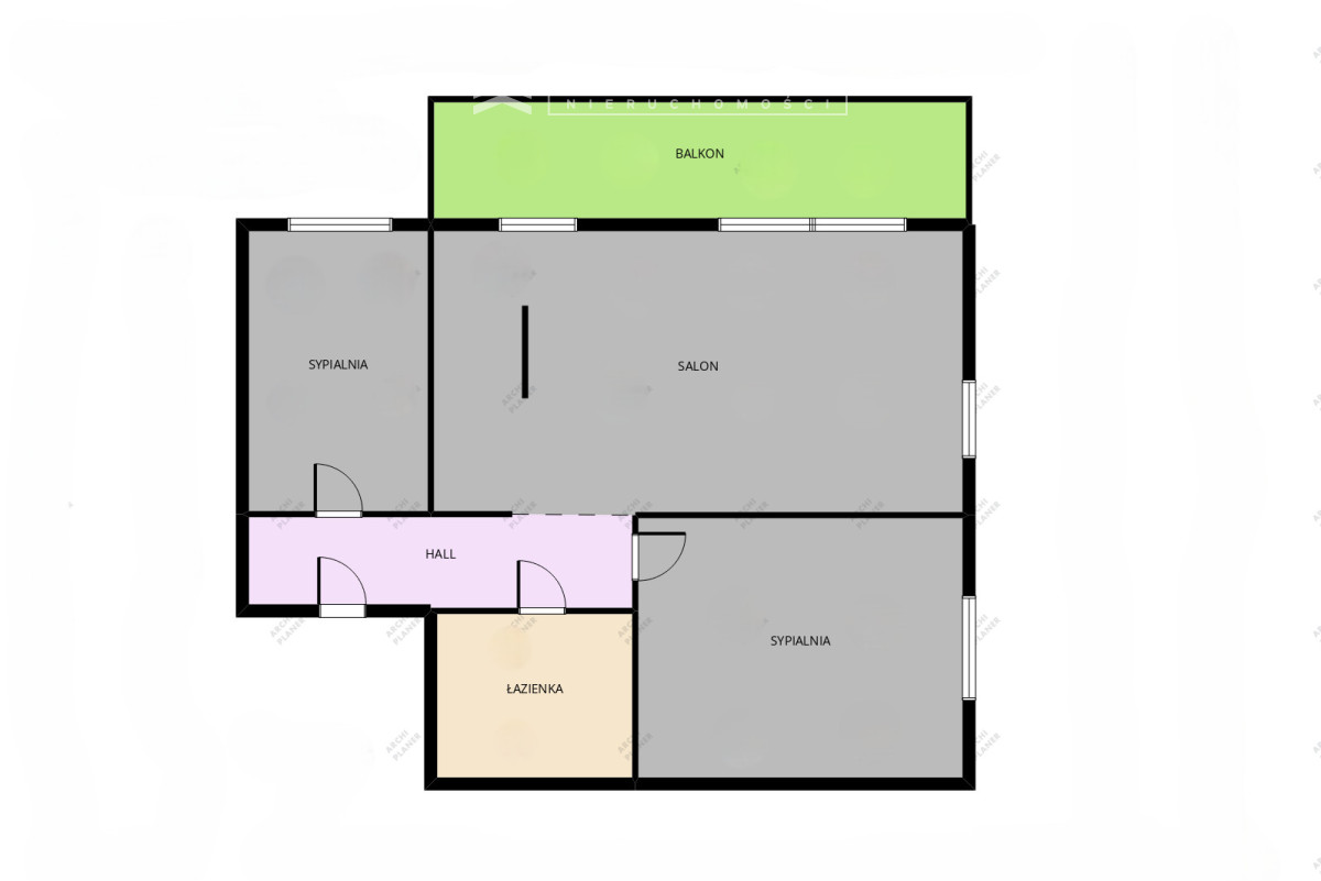 Na powierzchnię 64 m2 składa się duży salon z aneksem kuchennym, 2 niezależne sypialnie i łazienka z wanną i prysznicem. Mieszkanie dwustronne, posiada duży balkon.