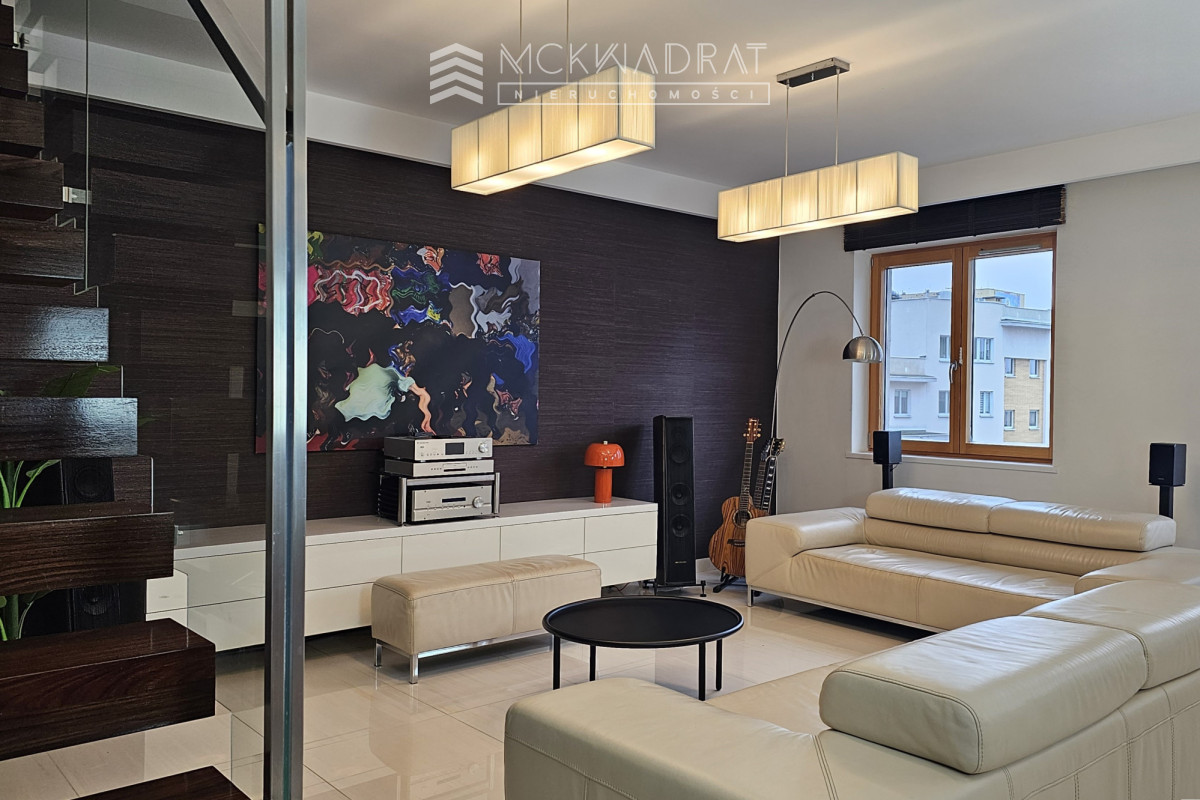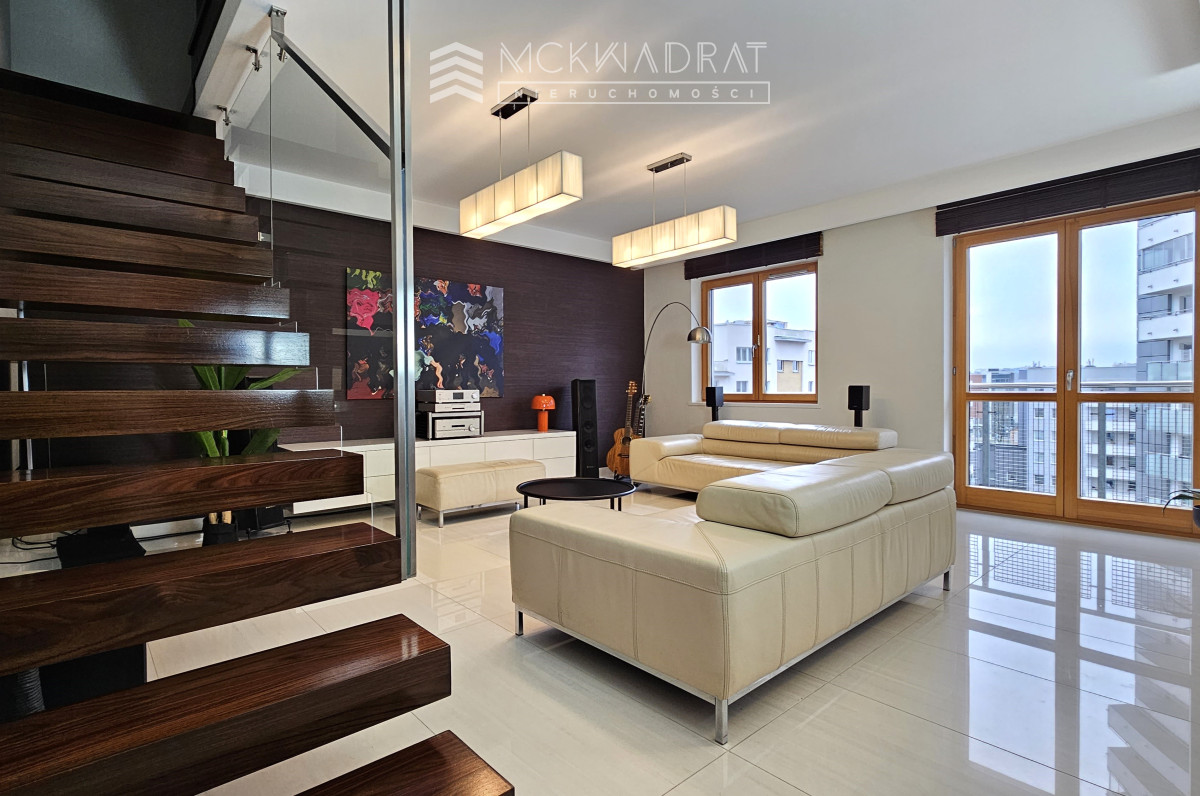 Bardzo ładne 5-pokojowe mieszanie z niesamowitym tarasem o powierzchni 35 m2 i widokiem na panoramę Białegostoku, usytuowane na 5 i 6 piętrze, w nowym budownictwie z 2009 roku, w budynku z windą, na Osiedlu Piaski, przy ulicy Waszyngtona, a więc niemal w centrum miasta.