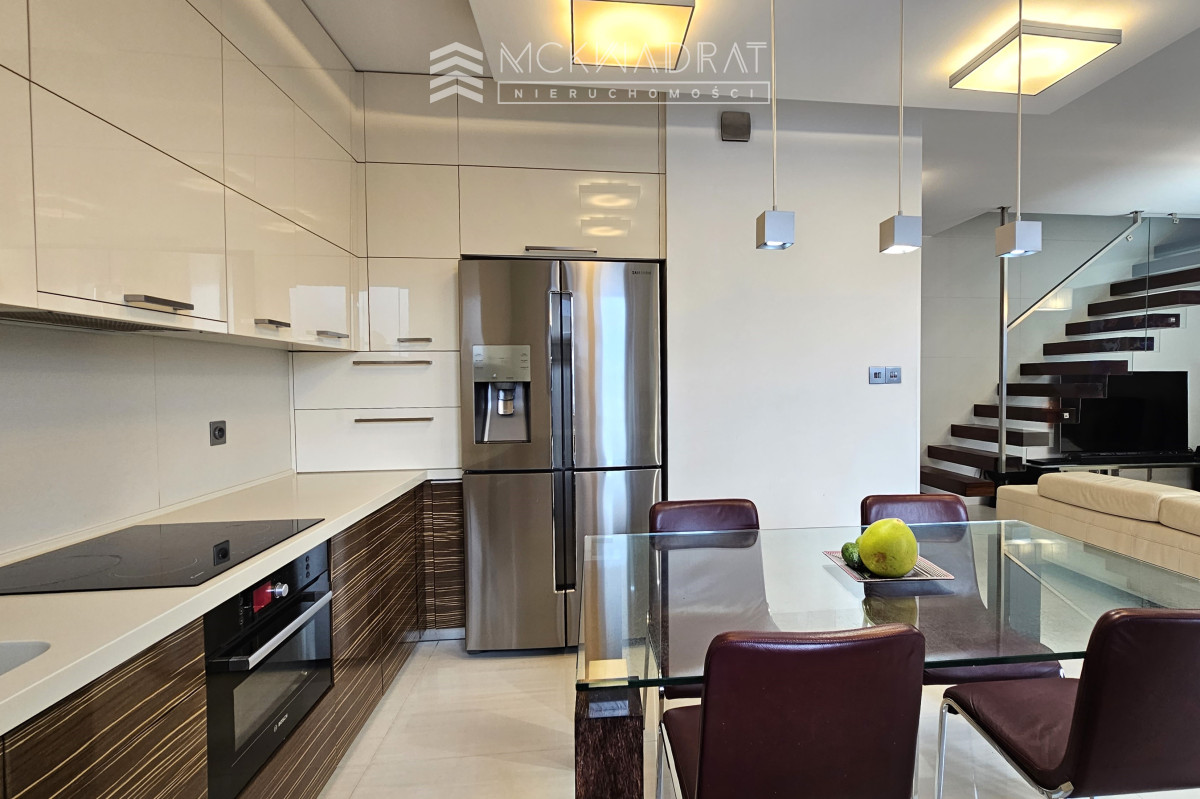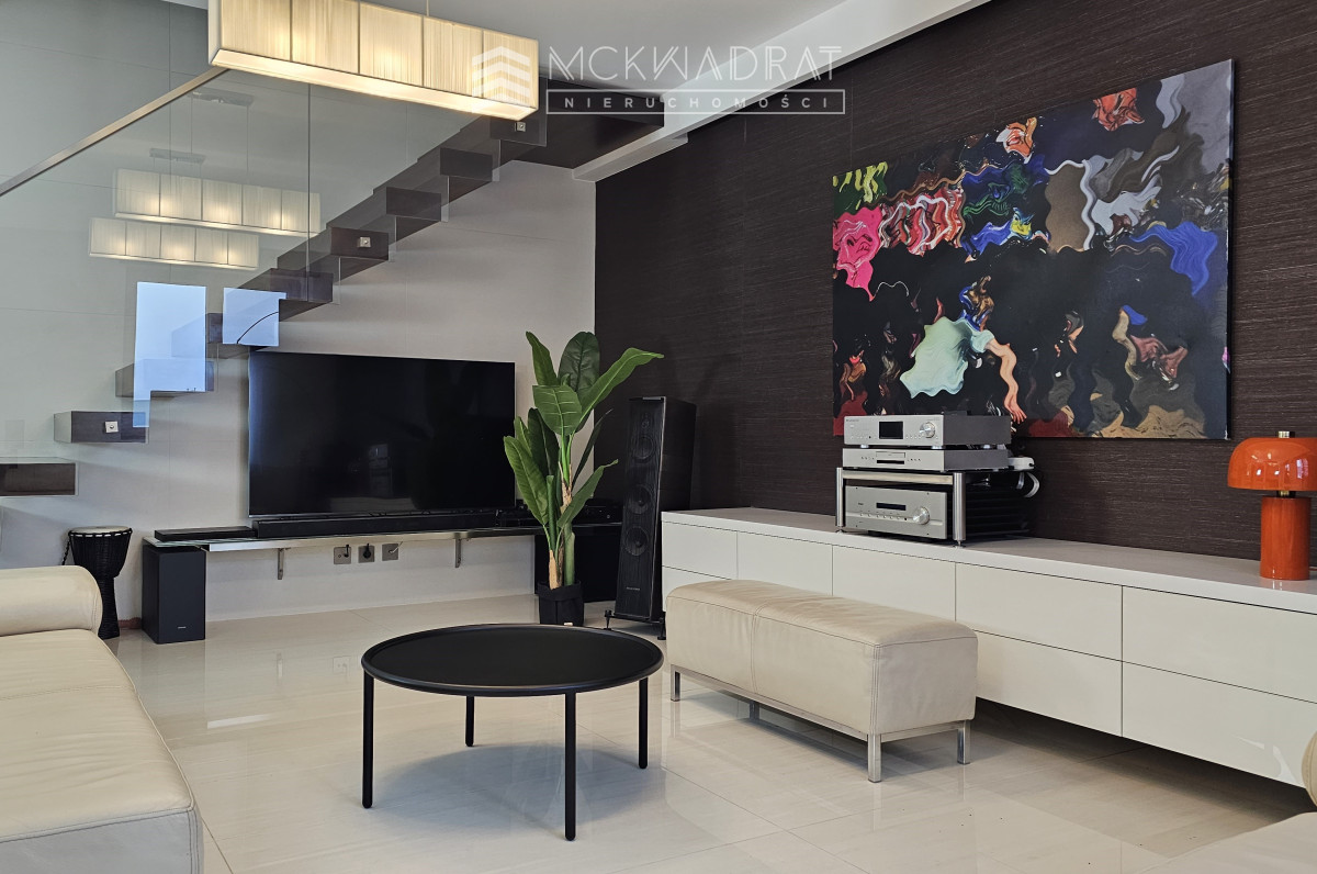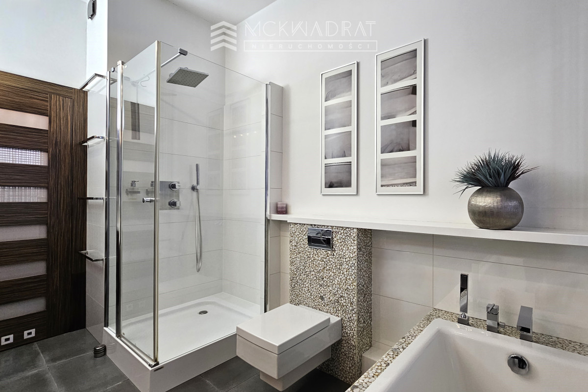 2 poziom: 3 niezależne sypialnie, garderoba, duża łazienka z wanną i prysznicem oraz atrakcyjna oranżeria o powierzchni 20 m2, która może stanowić także 4 sypialnię. Wyjście na taras o powierzchni 35 m2. Wszystkie pomieszczenia wyposażone są w klimatyzację.