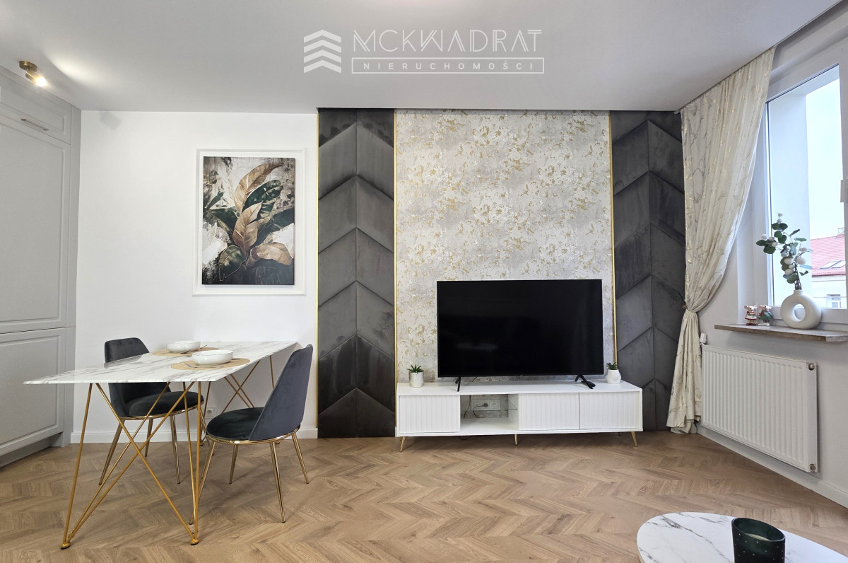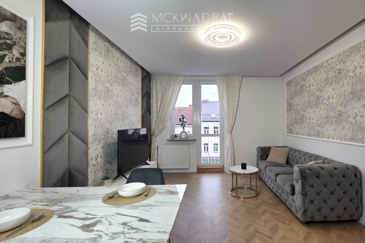 Luksusowe mieszkanie, nowocześnie wykończone i w pełni wyposażone w meble i sprzęty RTV AGD, słoneczne z inspirującym widokiem na główną ulicę miasta.