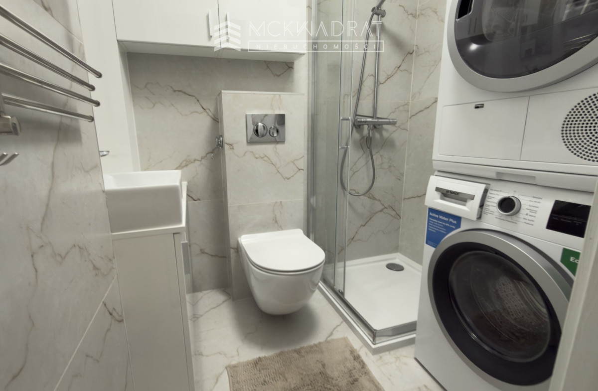 umeblowany — kuchnia posiada lodówkę, zmywarkę i wszystkie niezbędne sprzęty, a na życzenie istnieje możliwość