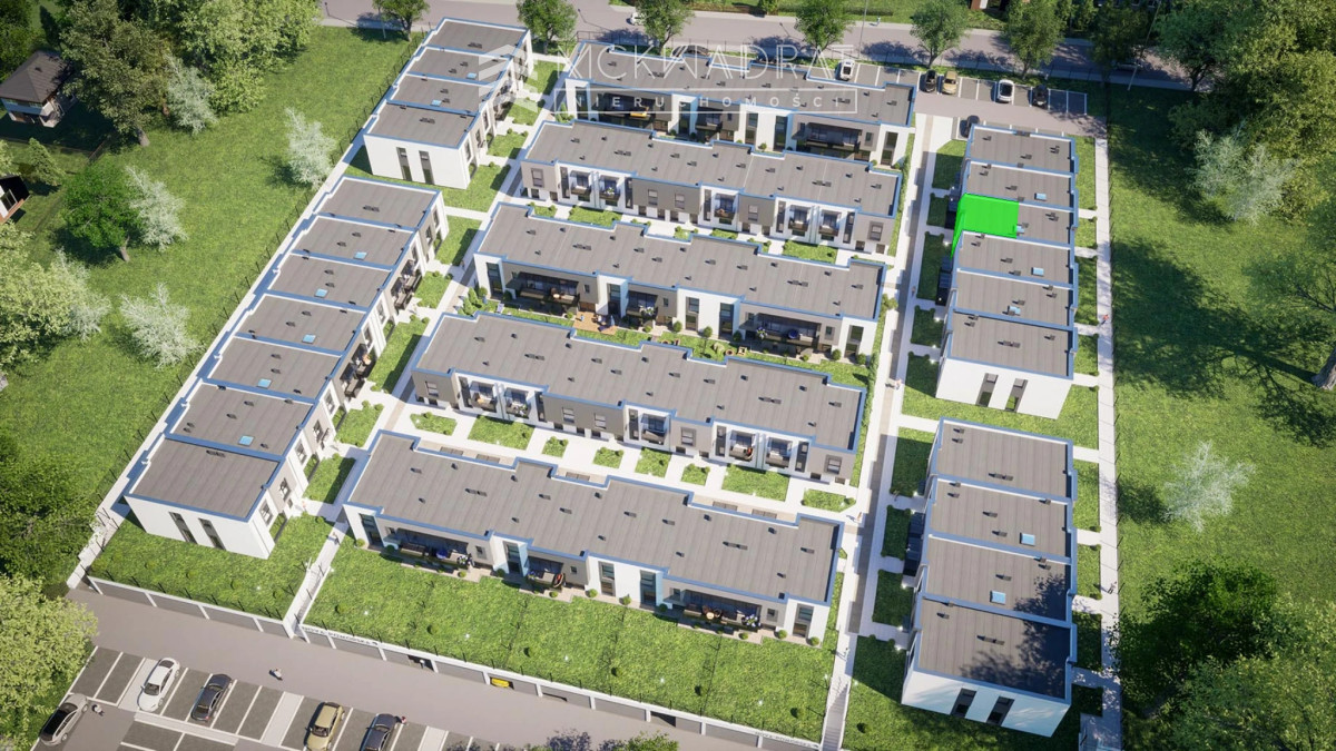Kameralne osiedle domów w zabudowie szeregowej, zbudowane w końcu 2025 roku, nowoczesna architektura budynków i estetyczna kolorystyka, zlokalizowane przy ulicy Pomorskiej, na skraju osiedli Skorupy, Piasta i Mickiewicza - bardzo blisko centrum Białegostoku.